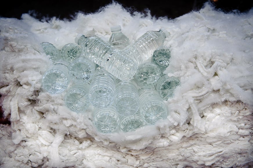 Nous utilisons un procédé innovant de valorisation des bouteilles plastiques en polyester post-consommation : Celles-ci sont collectées, soigneusement broyées puis fondues à haute température afin d’obtenir une fibre textile régénérée. Cette fibre, utilisée comme garnissage, offre une alternative durable et performante pour la confection de couettes et d’oreillers. En plus de réduire considérablement la consommation d’énergie par rapport à la production de fibres vierges, ce procédé contribue à limiter les déchets plastiques et à donner une seconde vie à une ressource précieuse.