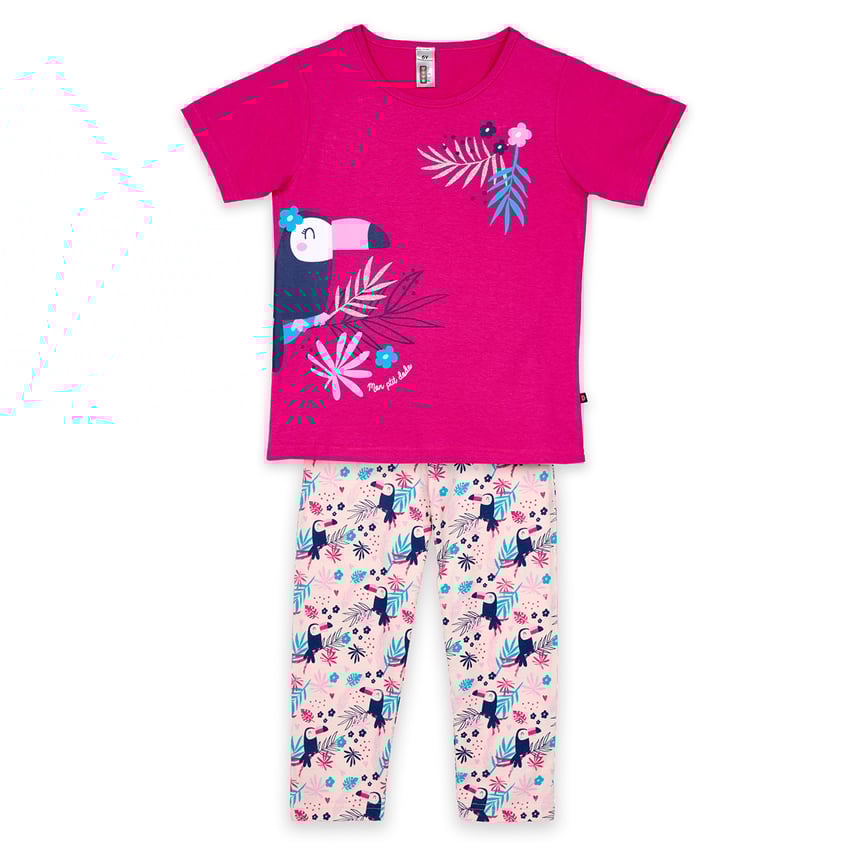 Pyjama court fille TOUCAN rose/nude