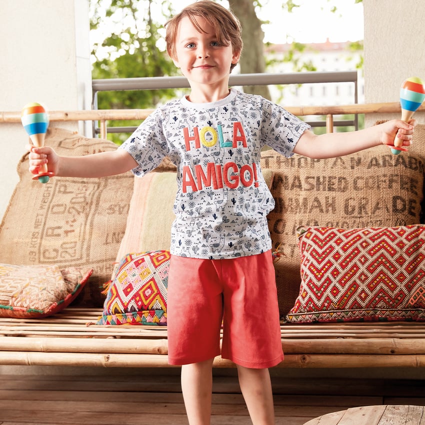 Pyjashort garçon HOLA AMIGO gris chiné imprimé/corail